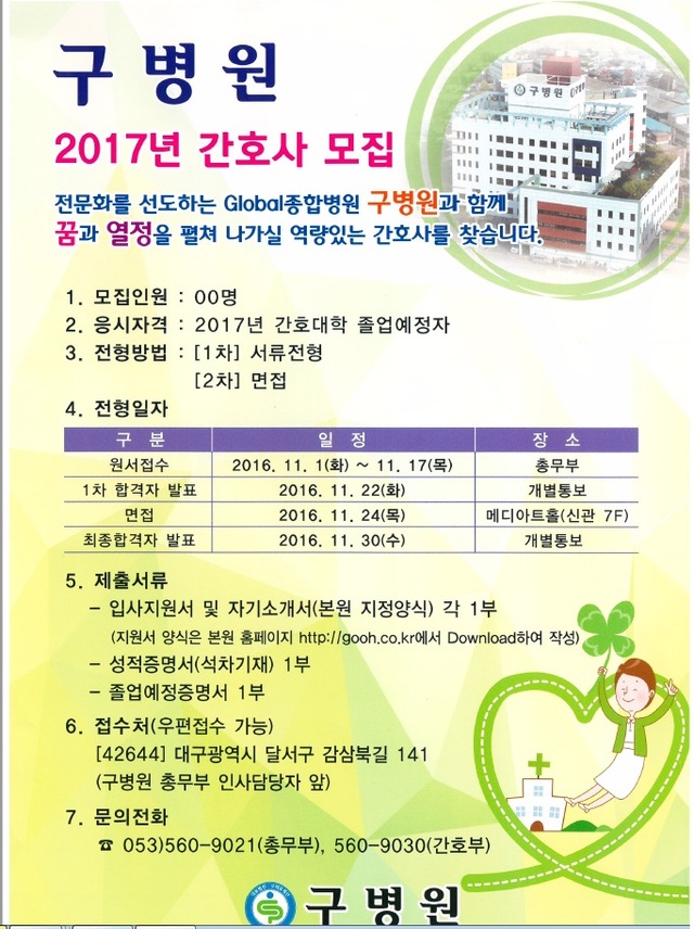 [채용공고] 구병원 신규간호사 모집공고