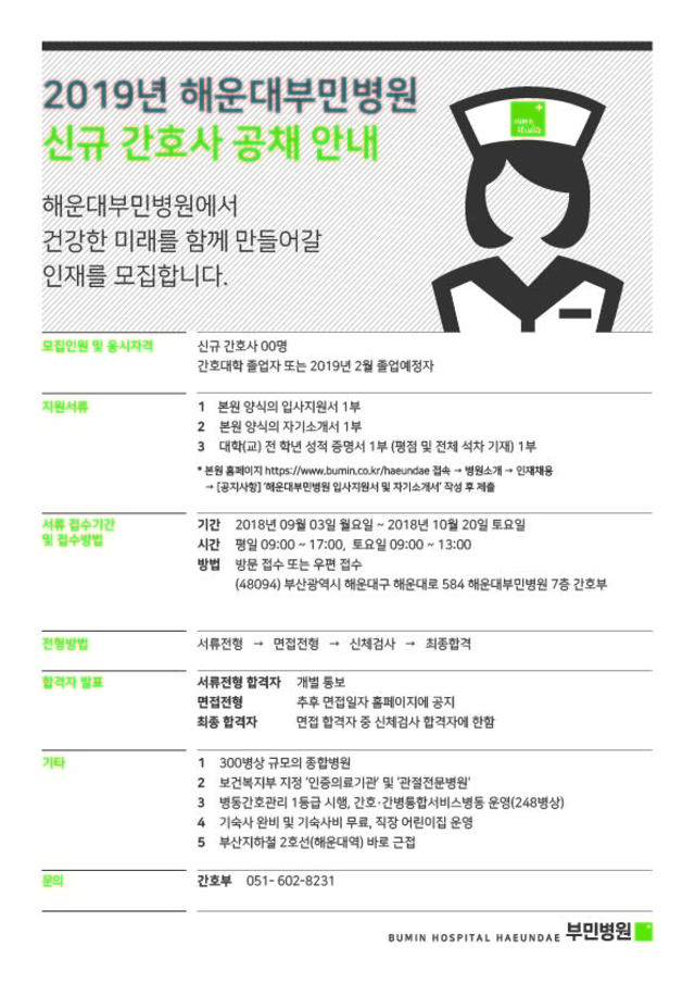 ◈채용공고◈ 해운대부민병원 신규간호사 공채 안내