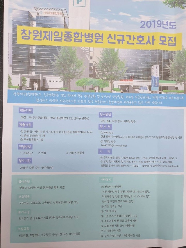 ◈채용공고◈ 2019년도 창원제일종합병원 신규간호사 모집 안내