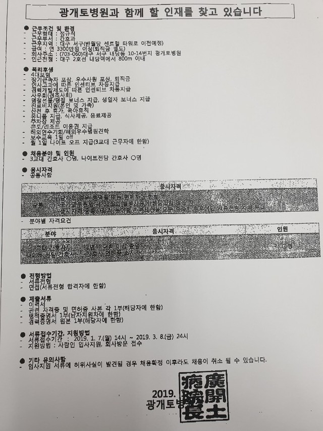 ◈채용공고◈ 광개토병원 간호사 모집공고 안내