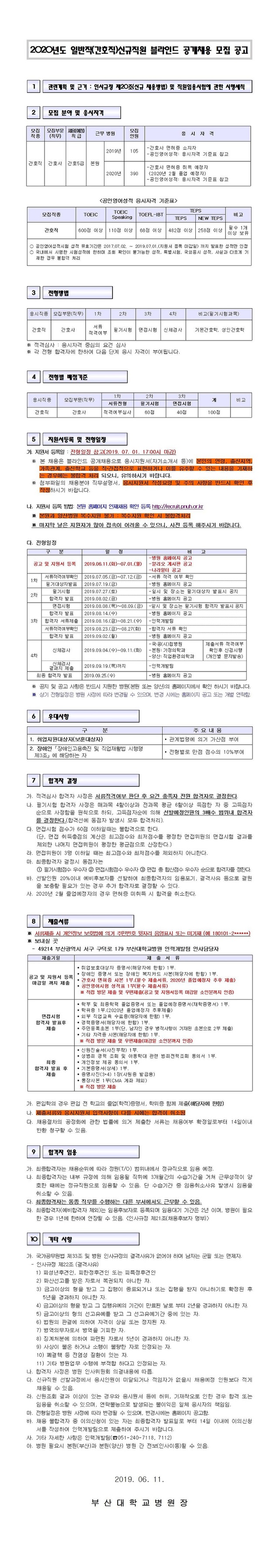◈채용공고◈ 부산대학교 2020년도 일반직(간호직) 신규직원 블라인드 공개채용 모집 공고_본원