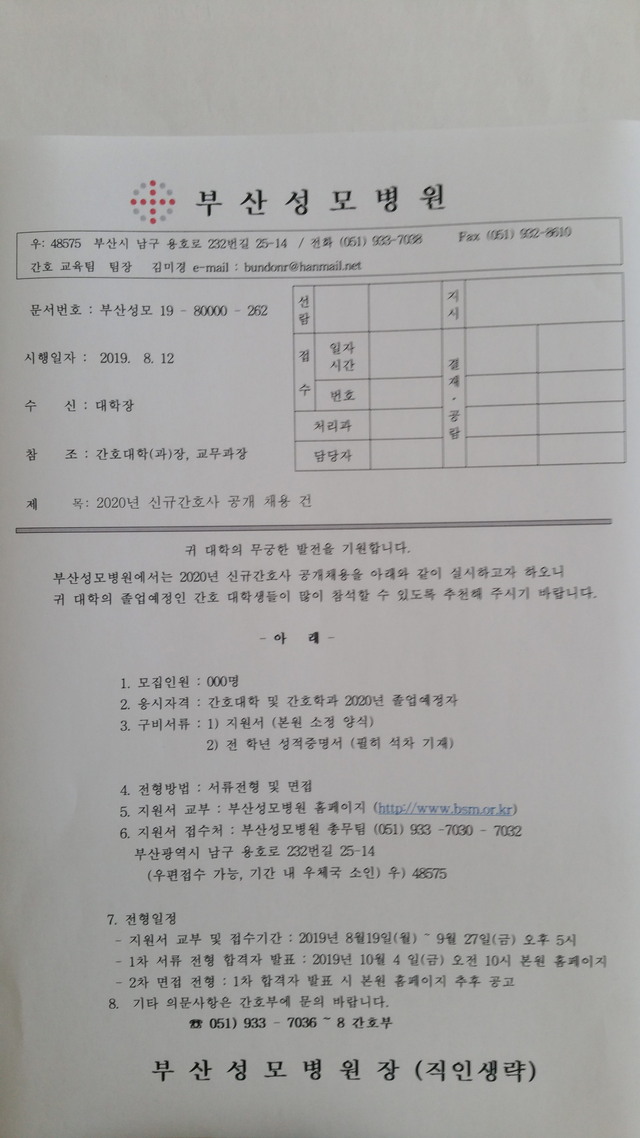◈채용공고◈ 부산성모병원 2020년 신규간호사 공개 채용 안내