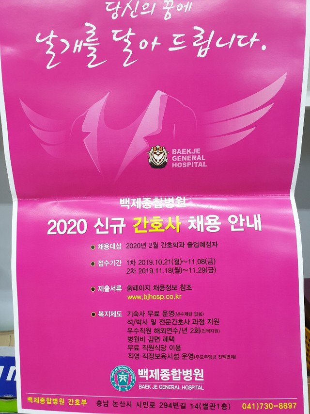 ◈채용공고◈ 백제종합병원 2020 신규 간호사 채용 안내