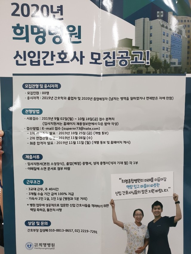 ◈채용공고◈ 2020년 희망병원 신입간호사 모집공고 안내