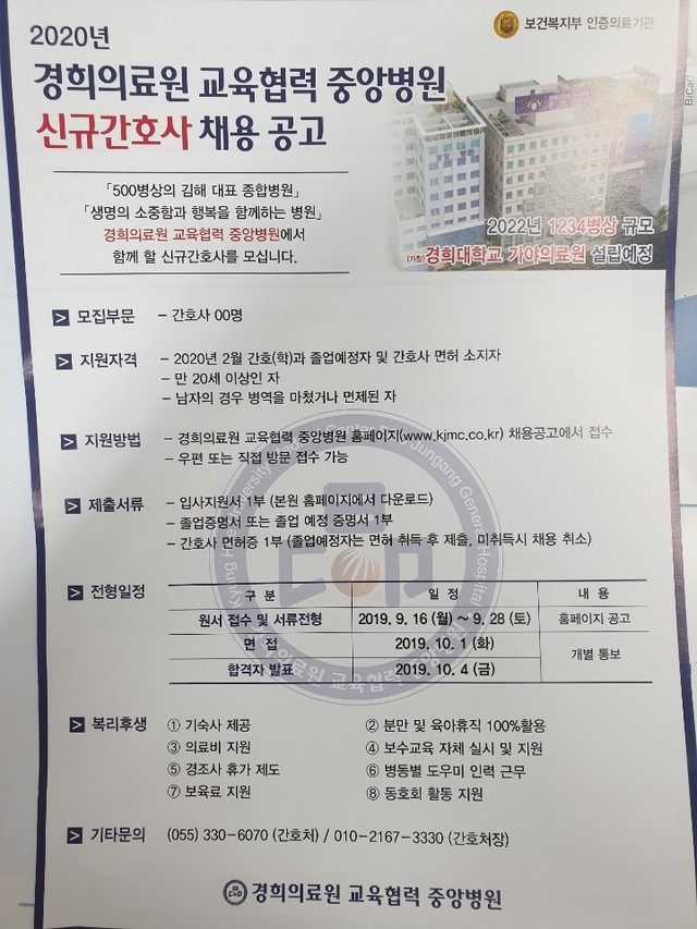 ◈채용공고◈ 2020년 경희의료원교육협력중앙병원 신규간호사 채용공고 안내