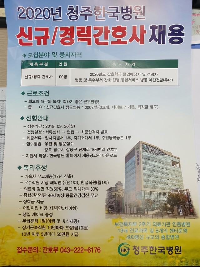 ◈채용공고◈ 청주한국병원 신규/경력간호사 채용 안내