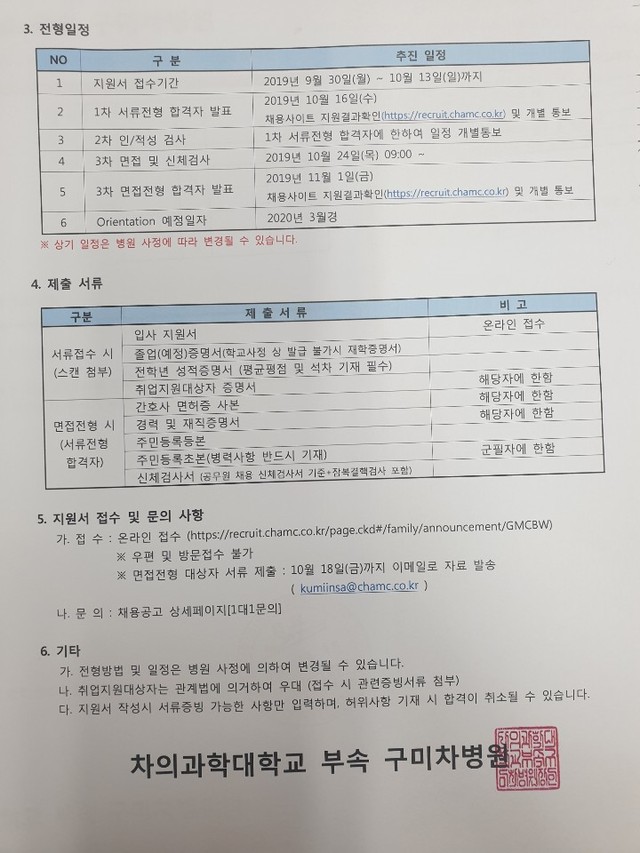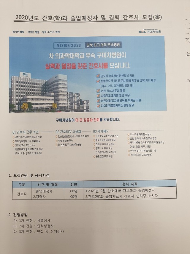 ◈채용공고◈ 구미차병원 2020년도 신입 및 경력간호사 모집 안내