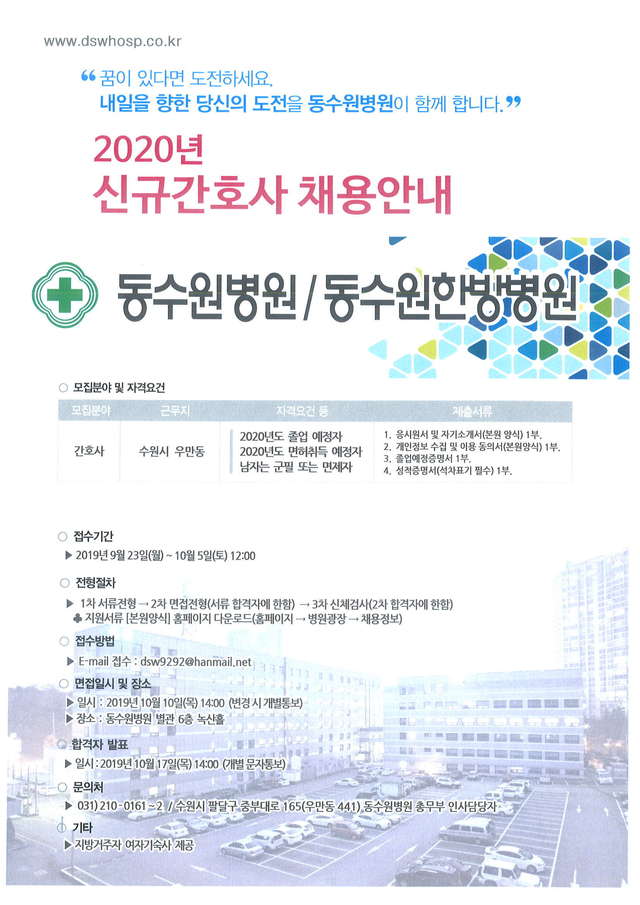 ◈채용공고◈ 동수원병원 2020년도 신입 간호사 모집 안내