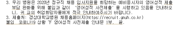 경상대학교 병원 입사희망자 영어성적 사전제출 안내