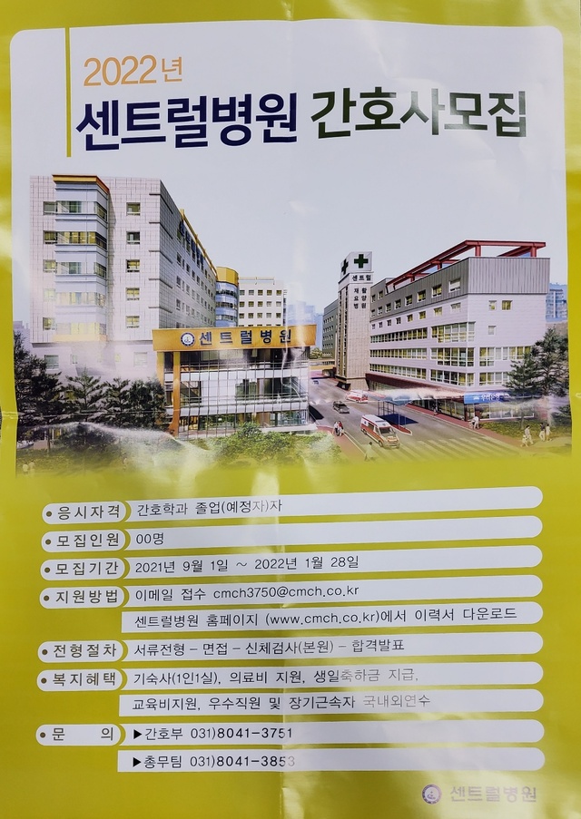 ◈채용공고◈ 2022년 센트럴병원 간호사 모집안내