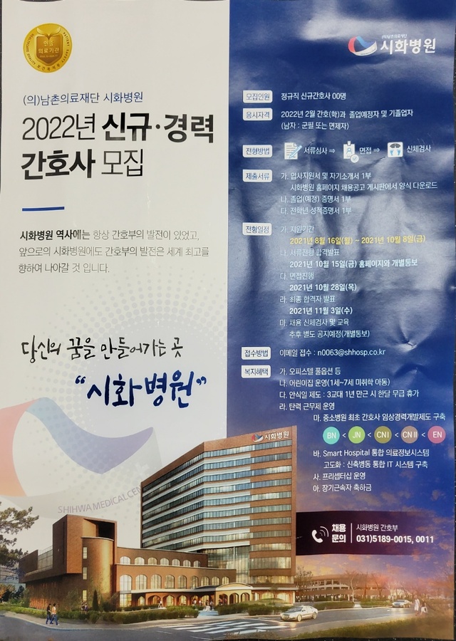 ◈채용공고◈ 시화병원 2022년 신규.경력 간호사 모집 안내