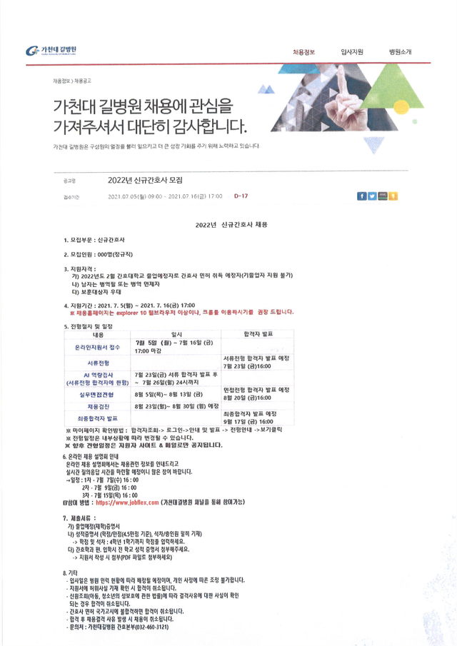 ◈채용공고◈ 가천대길병원 2022년 신규간호사 모집 안내