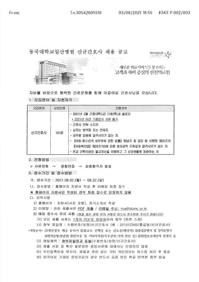 ◈채용공고◈ 동국대학교일산병원 신규간호사 채용 공고 안내
