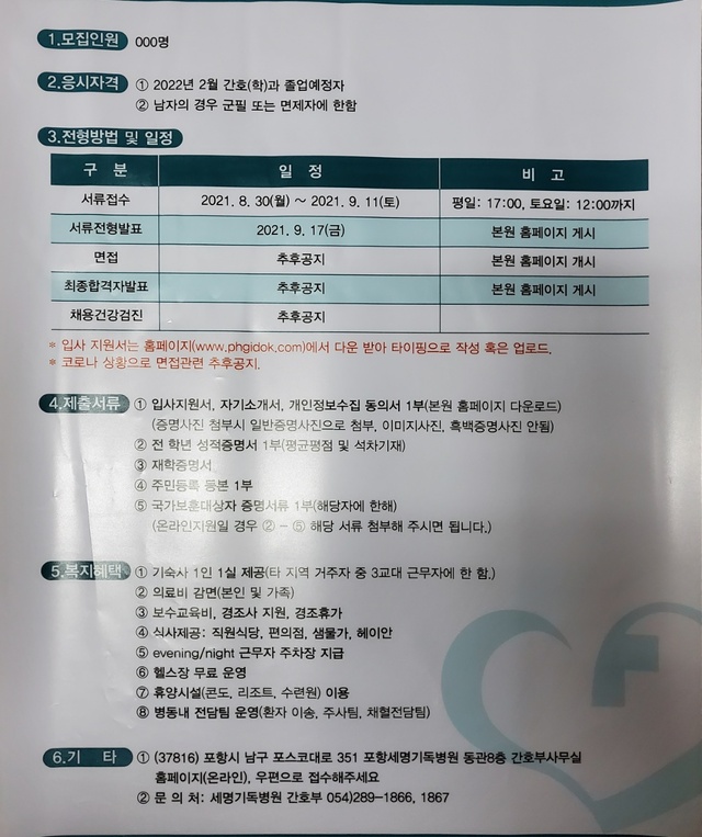 ◈채용공고◈ 세명기독병원 2022년 1차 신규간호사 채용안내