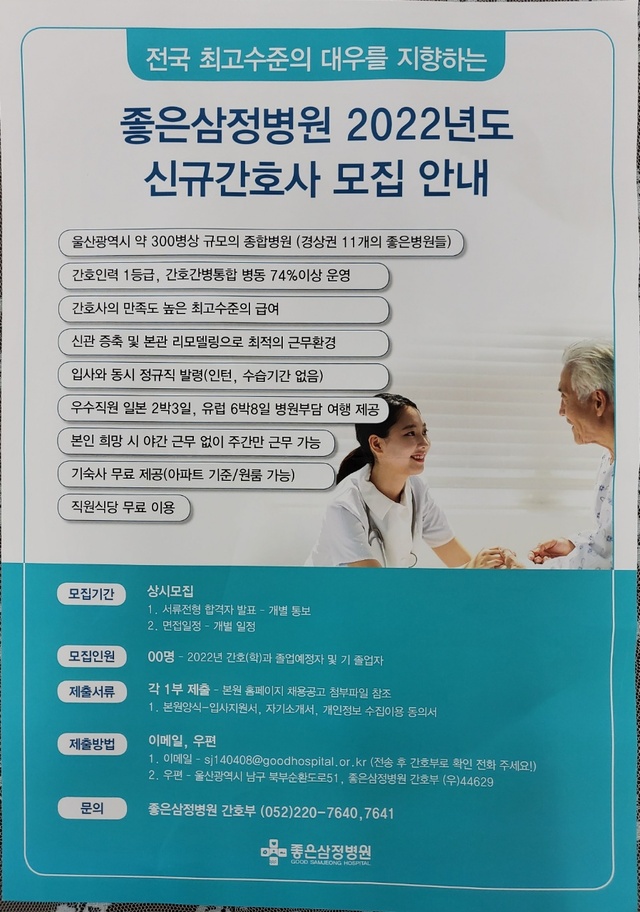 ◈채용공고◈ 좋은삼정병원 2022년도 신규간호사 모집안내