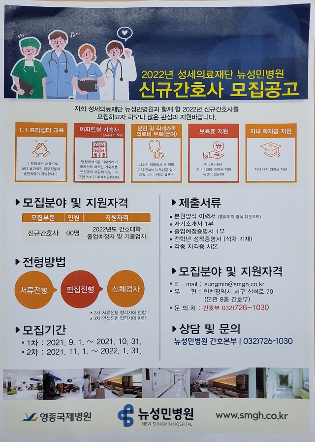 ◈채용공고◈ 2022년 성세의료재단 뉴성민병원 신규간호사 모집 공고 안내