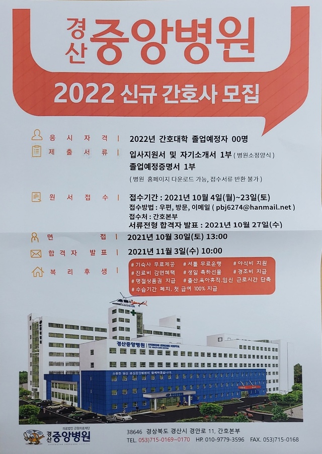 ◈채용공고◈ 경산중앙병원 2022년 신규간호사 모집공고 안내