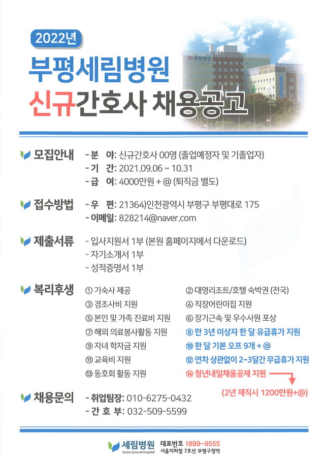 ◈채용공고◈ 2022년 부평세림병원 신규간호사 채용공고 안내