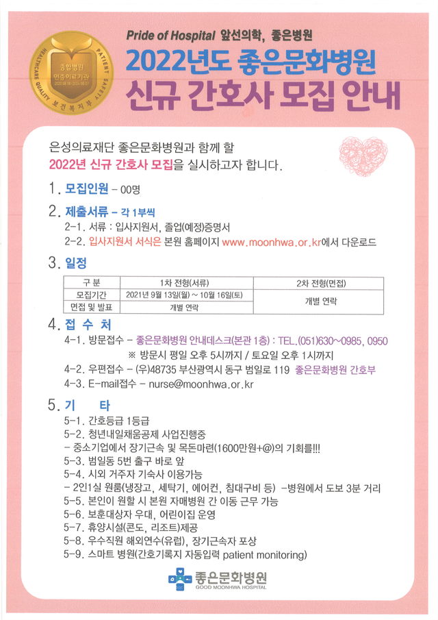 ◈채용공고◈ 2022년도 좋은문화병원 신규간호사 모집 안내