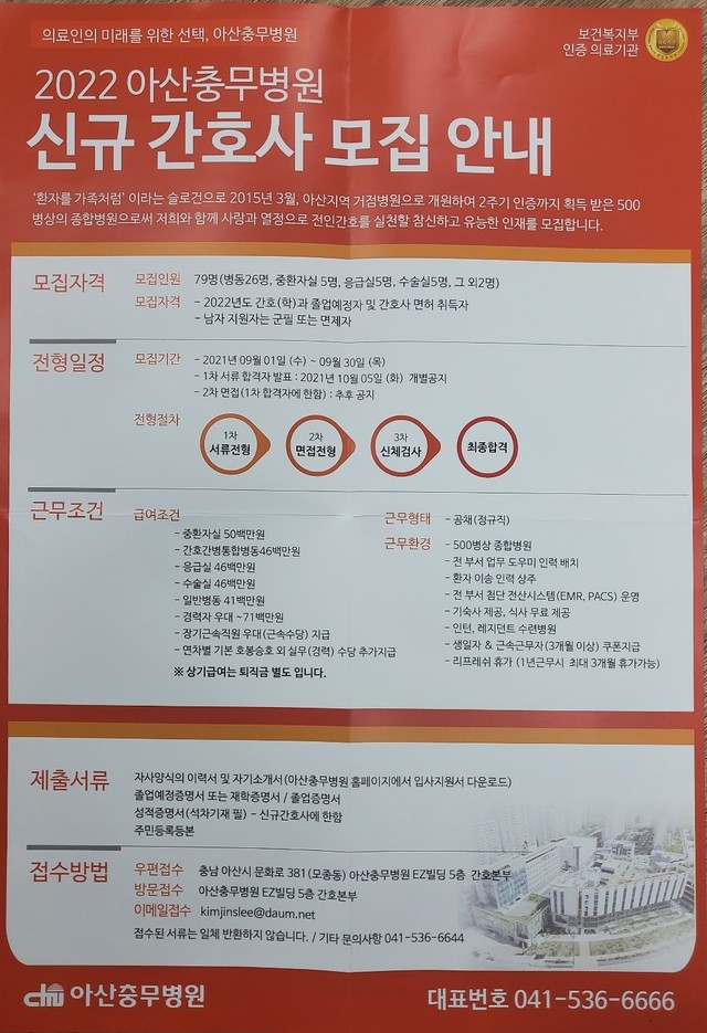◈채용공고◈ 2022 아산충무병원 신규 간호사 모집 안내