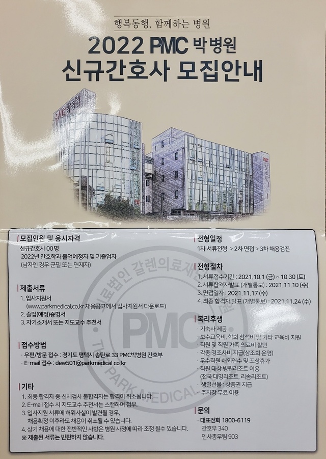 ◈채용공고◈ 2022 PMC박병원 신규간호사 모집안내