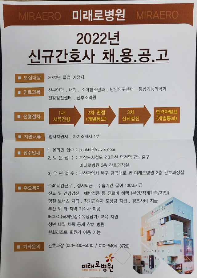 ◈채용공고◈ 미래로병원 2022년 신규간호사 채용공고