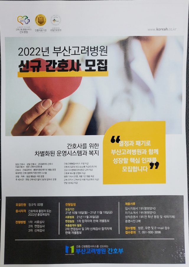 ◈채용공고◈2022년 부산고려병원 신규간호사 모집