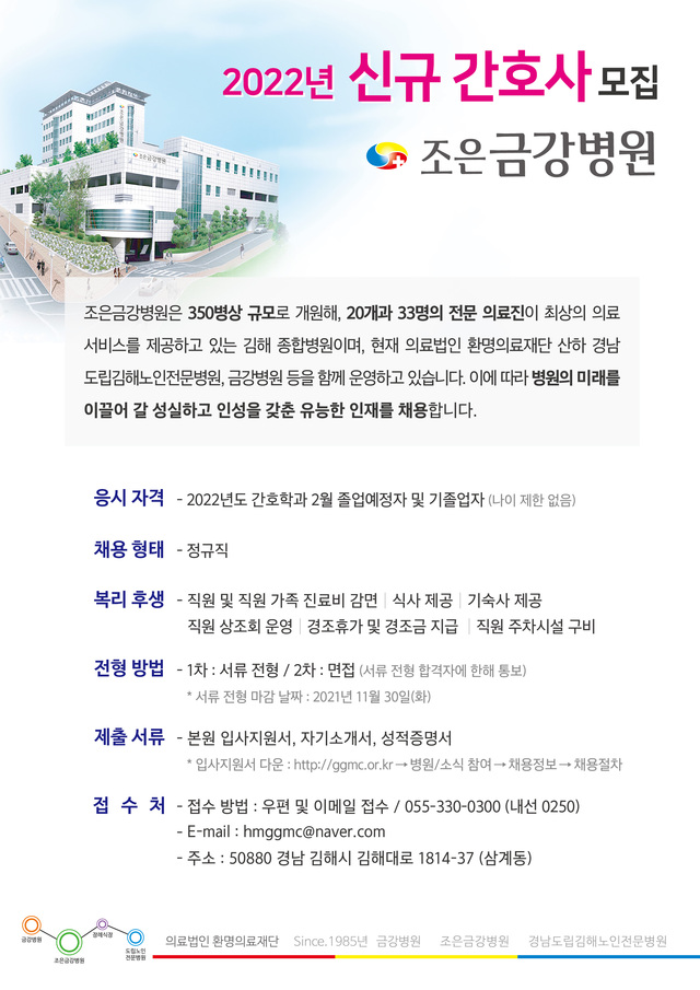 ◈채용공고◈ 조은금강병원 2022년 신규간호사 모집 안내
