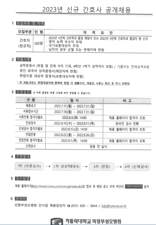 ◈ 채용공고 ◈ 카톨릭대학교 의정부성모병원 2023 신규간호사 채용공고