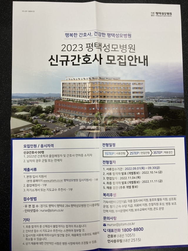 ◈ 채용공고 ◈ 2023년도 평택성모병원 신규간호사 모집안내