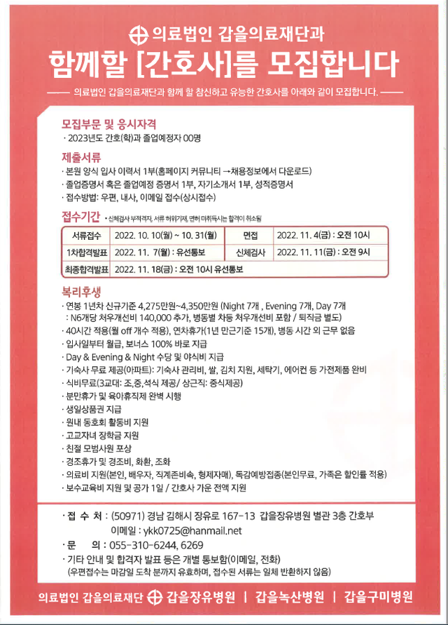 ◈ 채용공고 ◈ 의료법인 갑을의료재단과 함께할 간호사를 모집합니다