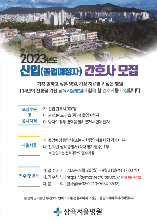 ◈ 채용공고 ◈ 삼육서울병원 2023년도 신입 간호사 모집 (졸업예정자)