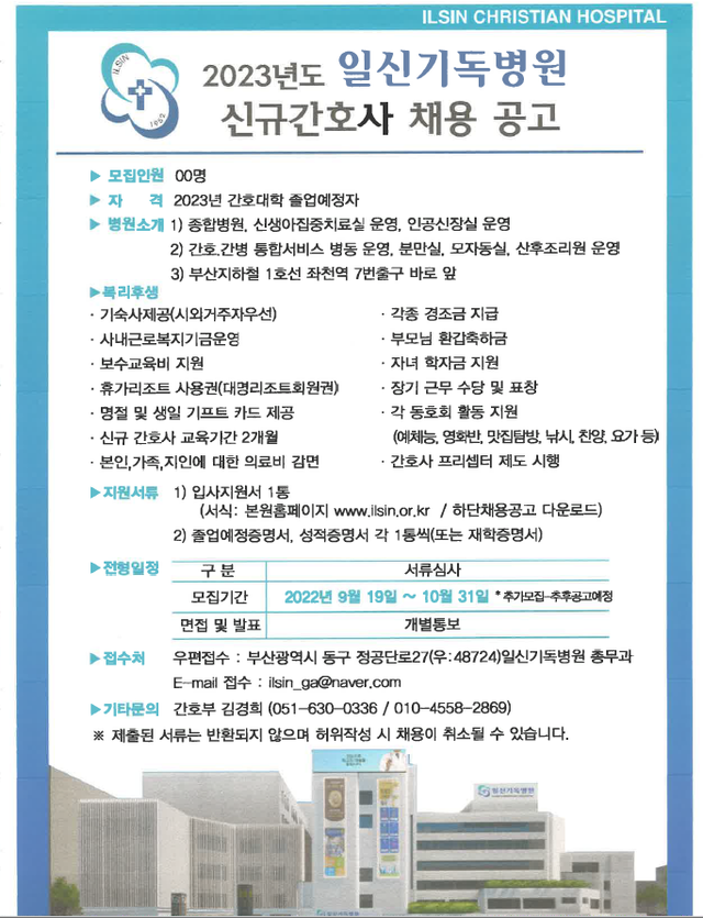 ◈ 채용공고 ◈ 2023년도 일신기독병원 신규간호사 채용
