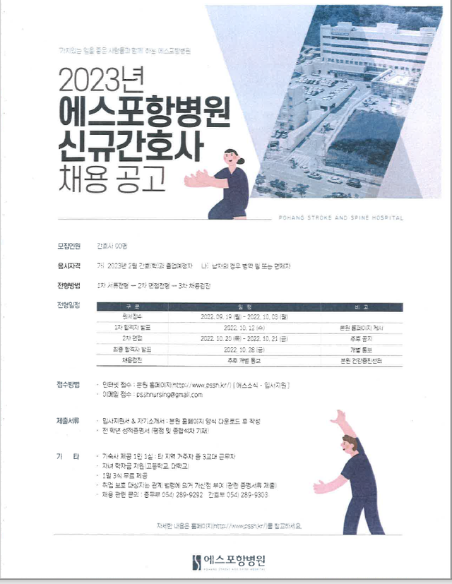 ◈ 채용공고 ◈ 2023년 에스포항병원 신규간호사 채용