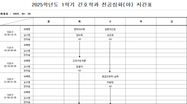 2025학년도 1학기 전공심화 시간표 및 교재