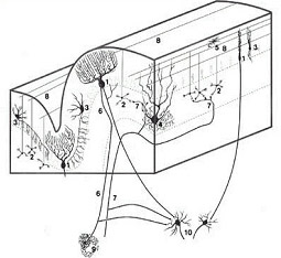 Tremendous amount of afferent input…, in fact, afferent fibers outnumber efferent by about 40 to 1. Afferent inputs to the cerebellum originate in the spinal cord, as well as in many regions of both